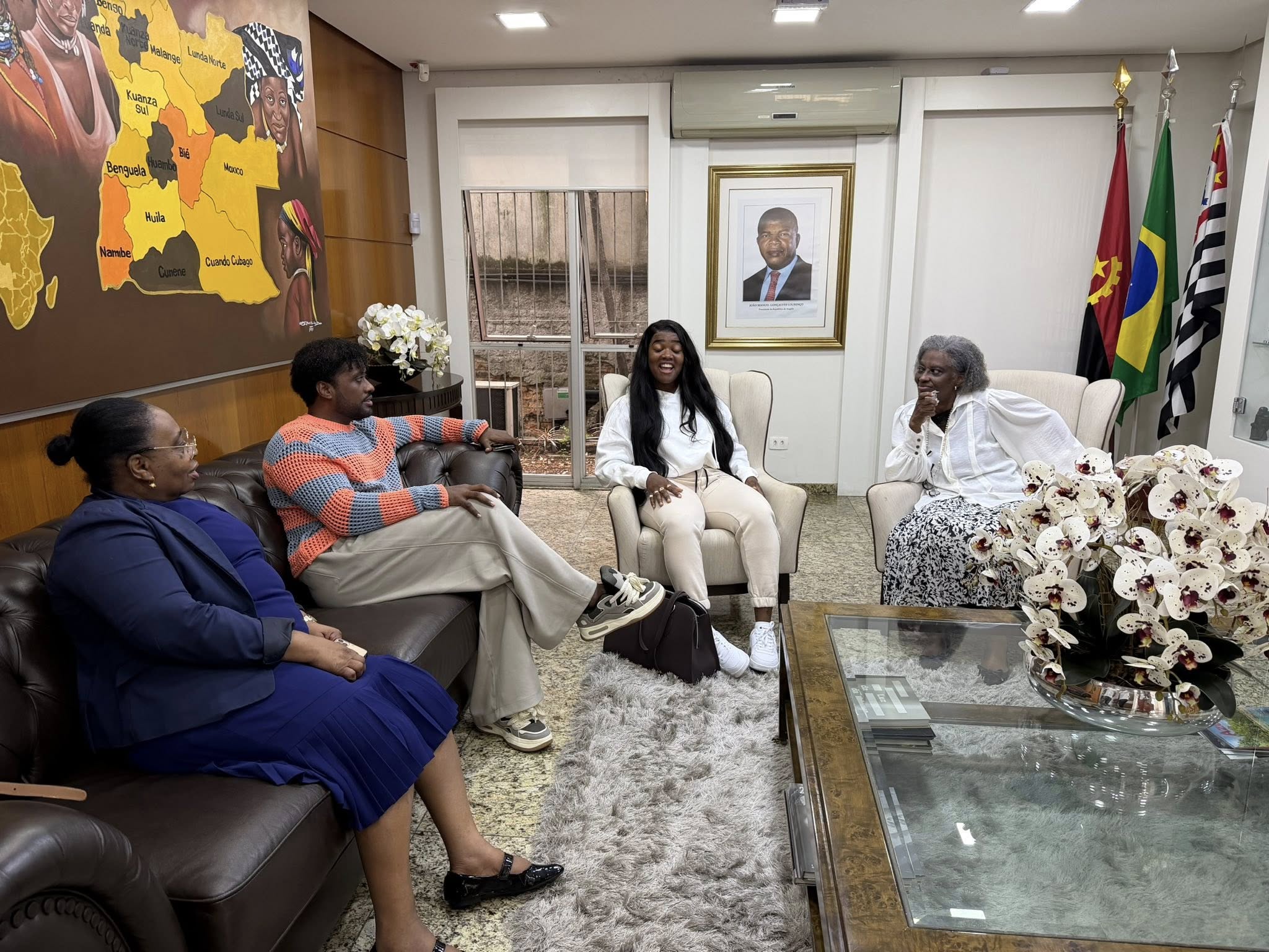 “Pilhas, fui bem recebida no Consulado Geral de Angola em São Paulo! A nossa mama Cônsul Stela Santiago, o meu muito obrigado.”